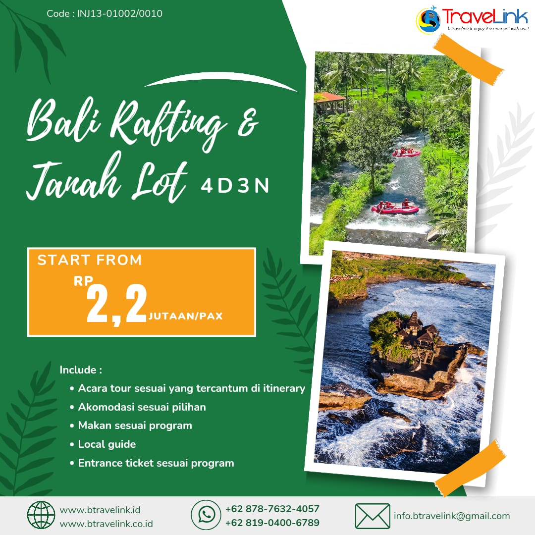 Experience the thrill of Bali’s whitewater rapids with our Bali Rafting & Tanah Lot Sunset package. Take on the rapids while enjoying the stunning scenery of Bali’s rivers. Explore the island’s unique culture and visit the iconic Tanah Lot Temple to witness a breathtaking sunset. Relax in the comfort of our accommodations and savor delicious local cuisine. This package offers the perfect balance of adventure and relaxation in Bali.